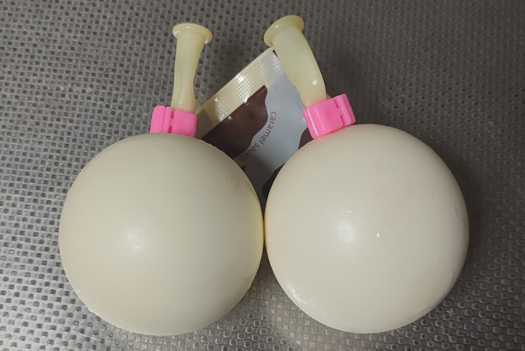 ゴム風船に入っているので、爪楊枝で割りました。結構固めなゴム風船なので割れるまでビビります。