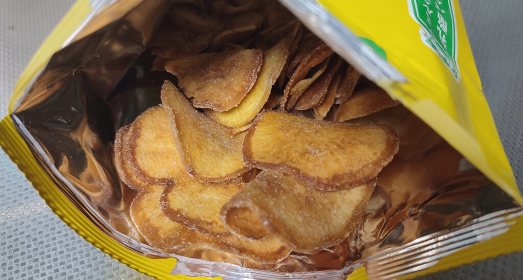 少し厚切りのサツマイモチップスに塩バターの風味がマッチして濃厚な味でとても美味しかったです!